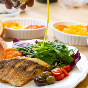 This salad and dressing could steal the show with its bright, punchy flavors and layers of lettuce blends. A star in its own right, this salad pairs perfectly in a supporting role with the seared red snapper. Bon appetite!
